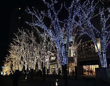 接著要看港未來21那多到目不暇給的商業、藝術、文化設施與公園。若自新高島車站往港的方向走的話,會經過被兩旁的店鋪圍著,道路中間擺放著花盆與小池塘,像是藝廊般的granmall公園。穿過公園,左手邊是MARK IS商場,正面的樹被大量的燈泡所裝飾,一到夜晚就被點綴得好不漂亮。右手邊是橫濱美術館,因為橫濱被譽為日本照相發祥地,來到橫濱美術館,絕對不能錯過橫濱美術館的相片收藏品。此外,朝著緩坡向上走會進到象徵橫濱的3棟超高層辦公大樓——皇后塔與購物商場——皇后廣場。以上次跟大家介紹的橫濱地標塔為頂點,日揮總部入駐的皇后塔A,與相連的2棟塔構成了橫濱美麗的天際線。