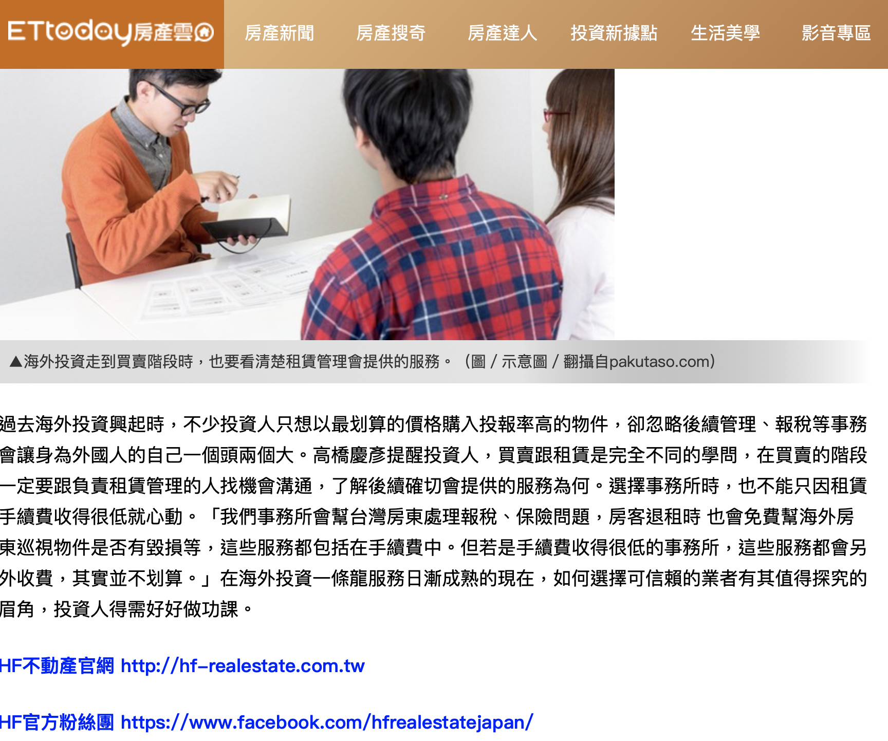 熟悉日本街道、日本生活的HF不動產支援您不動產的購入與投資。日本不動產的租賃與買賣請交給我們!
